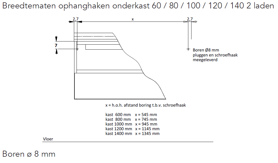 - Het meubel is voorzien van 2 lades