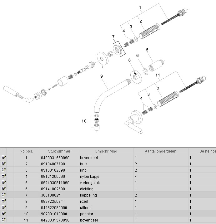 - Een bijpassend inbouwdeel voor in de wand, om dit afbouwdeel van de kraan op te monteren