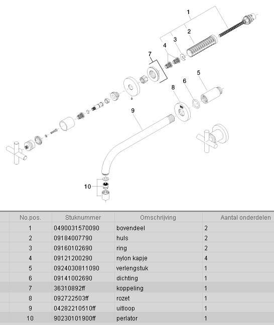 - Een bijpassend inbouwdeel voor in de wand, om dit afbouwdeel van de kraan op te monteren