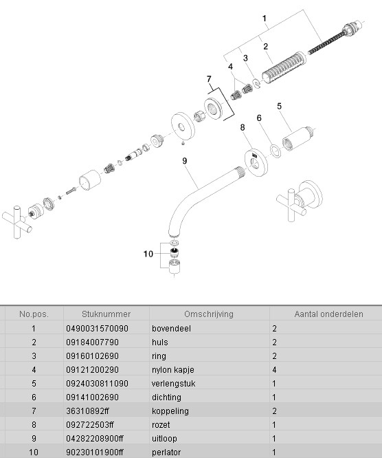 - Een bijpassend inbouwdeel voor in de wand, om dit afbouwdeel van de kraan op te monteren