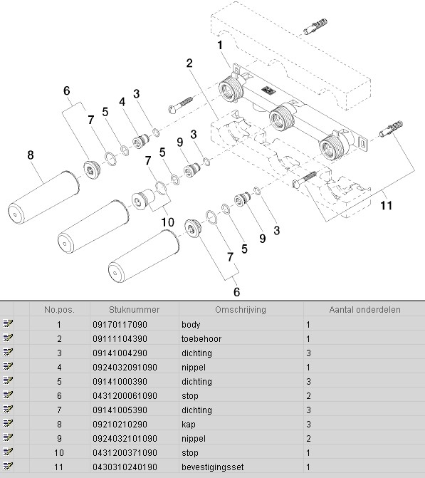 Dornbracht Wastafelwandmengkraan inbouw, Uitloop links