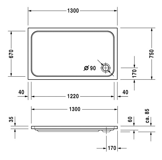 Duravit D-Code Douchebak rechthoek 130x75cm wit