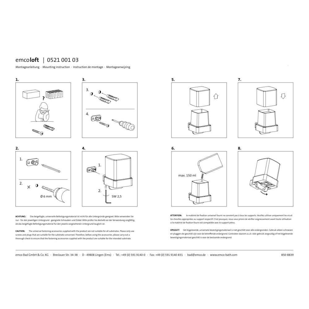 Emco Loft Box voor vochtige doekjes 15,6x15,5x6 cm Zwart