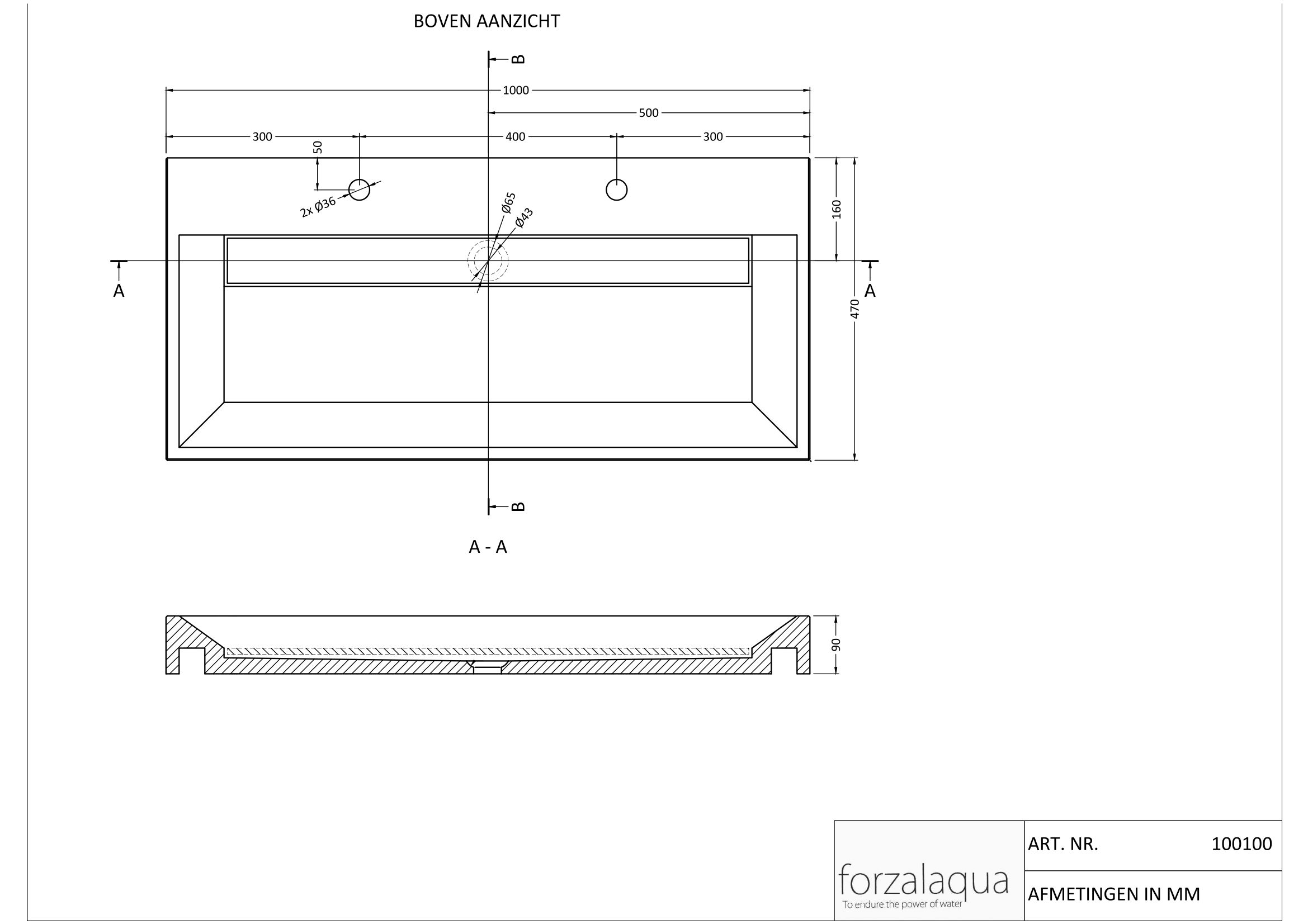 Deze wastafel is voorzien van 2 kraangaten en geschikt voor 2 kranen. Je kunt dus met 2 personen gelijktijdig een kraan gebruiken. Ideaal, want je staat elkaar niet meer in de weg tijdens de dagelijkse verzorgingsrituelen. De gaten bevinden zich links en rechts op de rand aan de achterzijde van de wastafel. Deze wastafel is ontworpen zonder overloop en ziet er dus erg egaal en strak uit. We adviseren in dit geval een niet-afsluitbare afvoerplug, om zeker te weten dat het water niet per ongeluk kan overstromen.