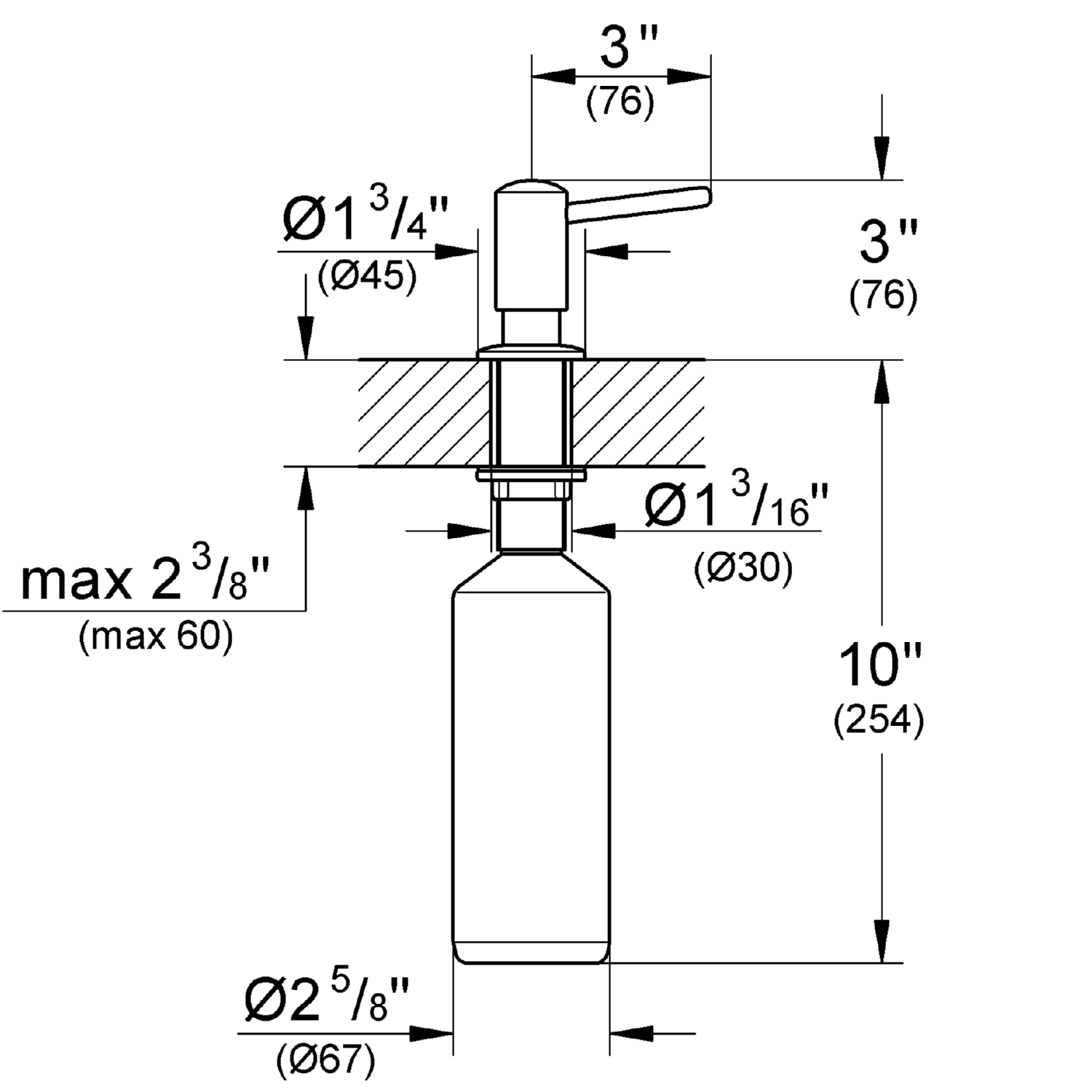 kunt u svp aangeven wat de maat is van het gat dat ik mijn aanrecht moet boren om dit zeeppompje daarin te kunnen plaatsen?