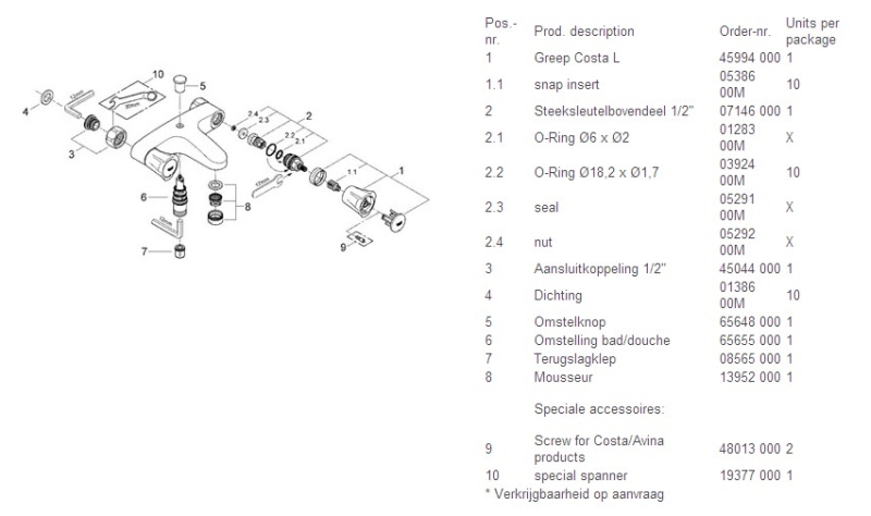 - Bevat geen handdouche en doucheslang, deze dien je apart aan te schaffen