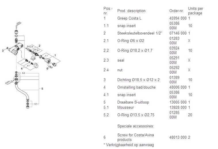 - Een doucheslang (met draadaansluiting 1/2"), zodat jij kan genieten van een heerlijke douche