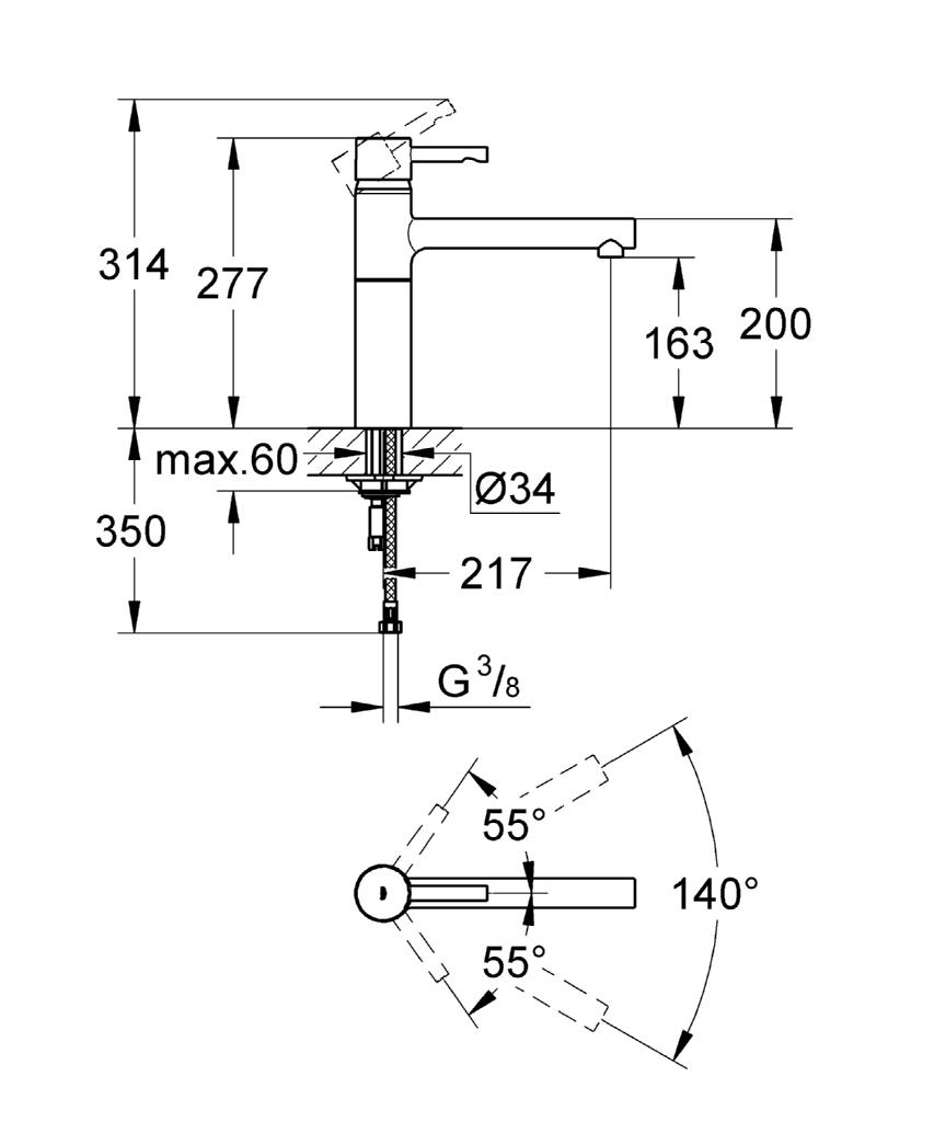 Wie van een opgeruimde keuken houdt, houdt van de strakke vorm van de GROHE Essence keukenkraan. De hoge uitloop vergroot je werkruimte. De kraan is bovendien draaibaar waardoor het makkelijke wisselen is tussen twee spoelbakken en het spoelen, vullen en schoonmaken van grote pannen ook makkelijker gaat. De hendel beweegt zeer soepel dankzij de GROHE SilkMove® technologie. Heel handig bij het handen wassen als je vuile handen hebt. Door de chromen GROHE StarLight® beschermlaag vergt de kraan amper onderhoud en blijft de glans jarenlang als nieuw. Maar het praktische begint al bij de installatie. Die is mede dankzij de eenvoudige handleiding en flexibele aansluitslangen in een mum van tijd moeiteloos gerealiseerd.
