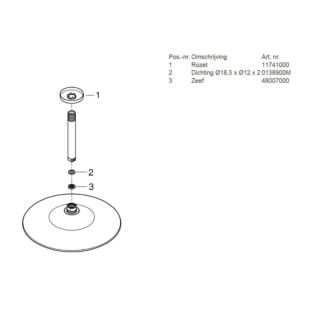 De hoofddouche is geschikt voor plafondmontage. Door deze plafondmontage kan je nog meer genieten van een heerlijke stortdouche. Er wordt een douche-arm meegeleverd, je bent dus altijd verzekerd van een passende douche-arm en je hoeft hier niet zelf naar op zoek. Extra gemak!