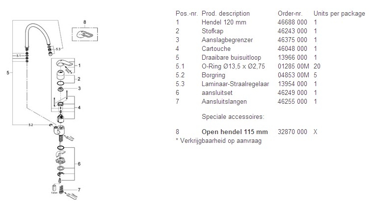 - Met draaibare uitloop: 0, 150 en 360 graden