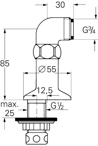 Grohe koppeling voor staande montage 1/2 inch . 3/4 inch 85 mm Chroom