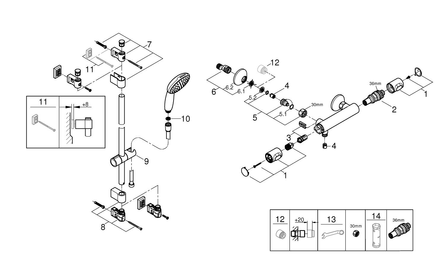 Montagetip: Wil je liever niet in de tegelwand boren? Gebruik dan Grohes supersterke QuickGlue S (41247000, apart verkrijgbaar) en lijm de douchestang tegen de muur.