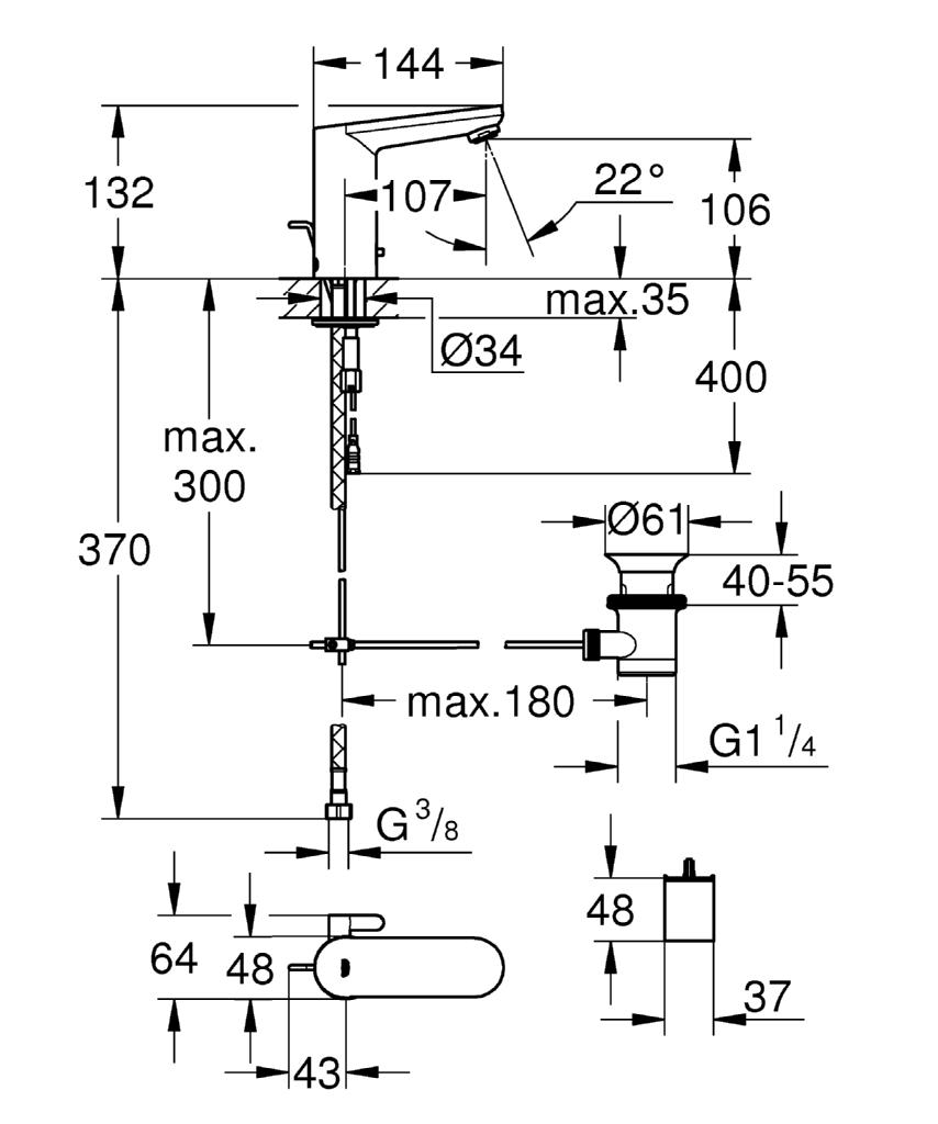 GroheEurosmart Cosmopolitan E elektronische wastafelkraan met menging Chroom