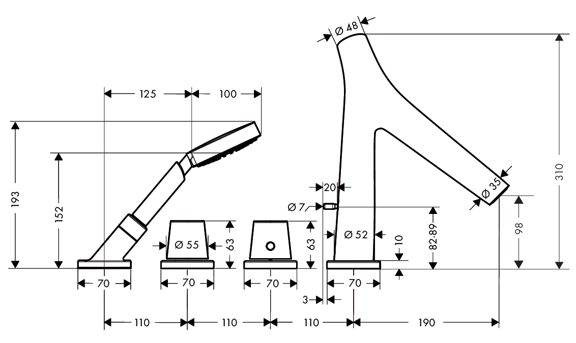Hansgrohe Axor Starck Organic afdekset 4-gats badrandcombinatie met douchegarn. Chroom
