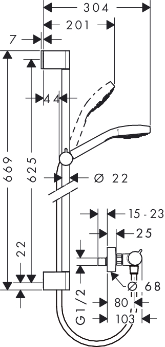 Is deze douchecombinatie ook te verkrijgen met een ca. 65 cm Comfort slang?