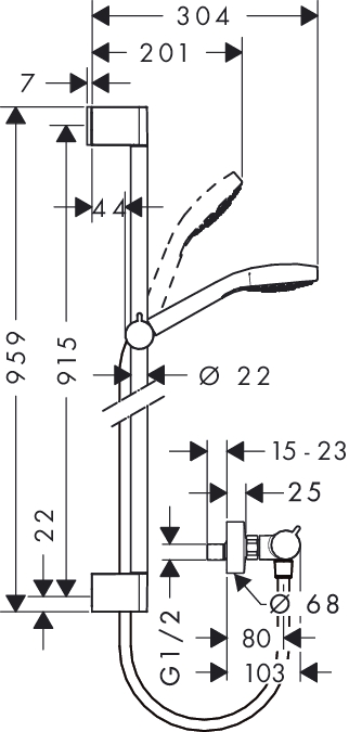 Hansgrohe Croma Select S Vario / Ecostat Comfort douchecombinatie 90 cm Wit-Chroom