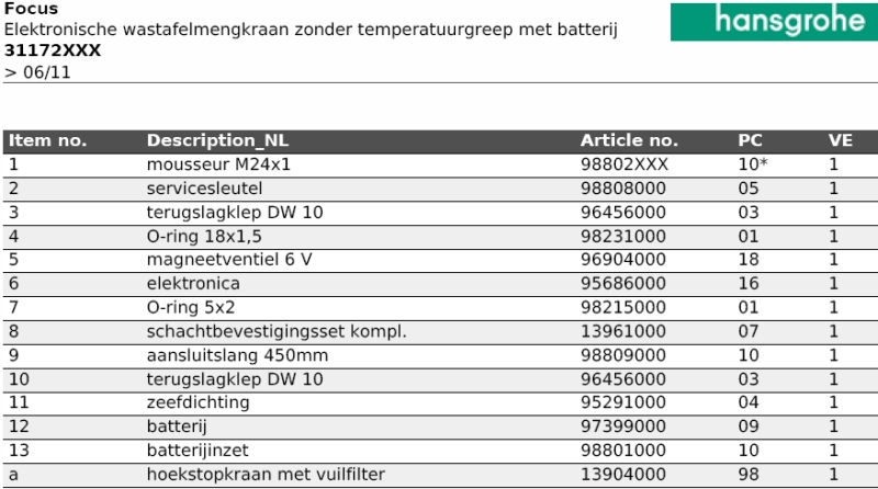 Hansgrohe Focus E electronische wastafelkraan met batterij Chroom