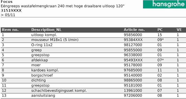 | Artikelnummer | 31519000 |