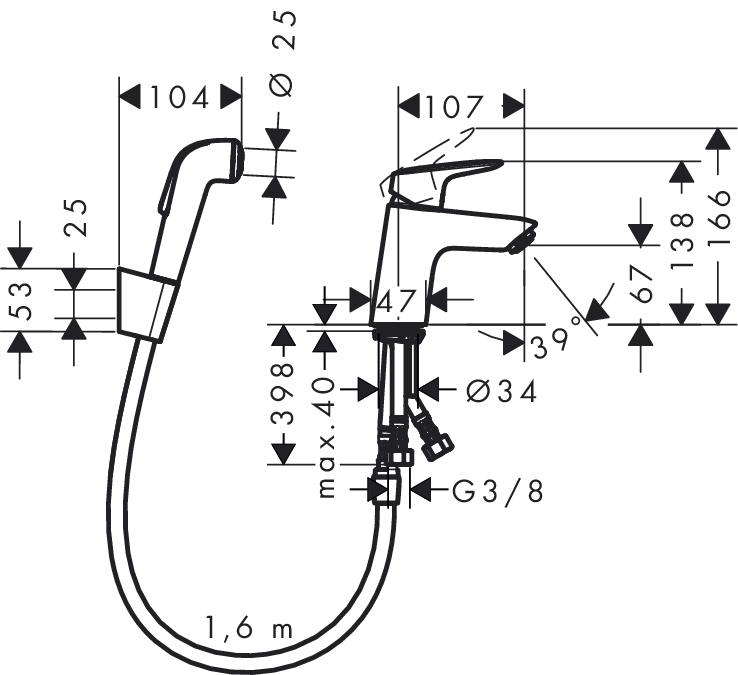 Hansgrohe Logis wastafelkraan 100 met bidetset Chroom