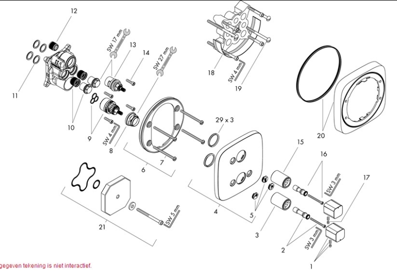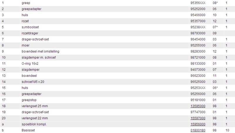 - De kraan wordt geleverd inclusief grepen, huls, afdekrozet, functieblok.