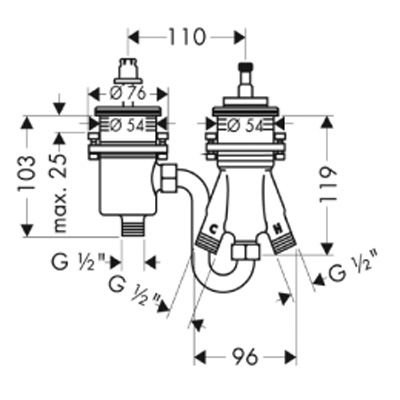 Hansgrohe Universeel basisgarn.voor 2-gats badrandcombinatie