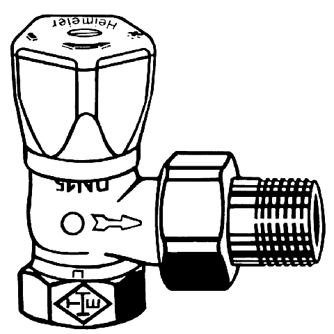 Heimeier radiatorkraan 1/2 inch haaks vernikkeld