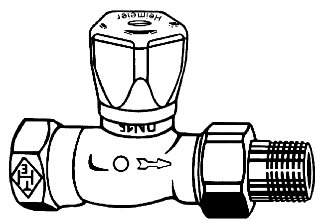 Heimeier radiatorkraan 1/2 inch recht vernikkeld