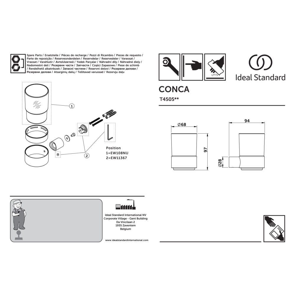 Ideal Standard Conca Glashouder met glas Silver Storm