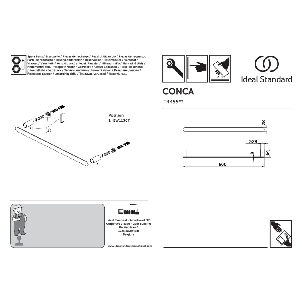 Ideal Standard Conca Handdoekhouder 60x6,4x2,8 cm Brushed Gold
