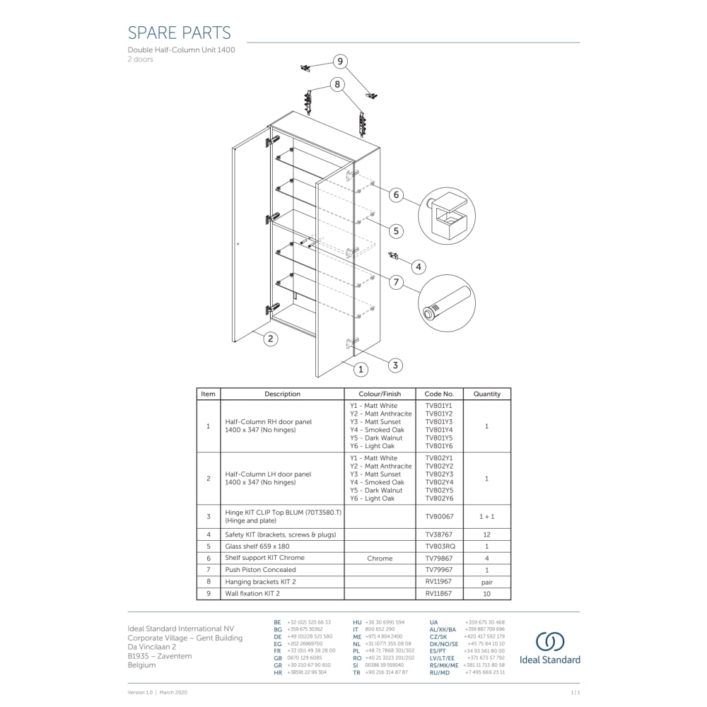 Ideal Standard Conca kast halfhoog 72x25x140 cm 2 deuren Dark Walnut