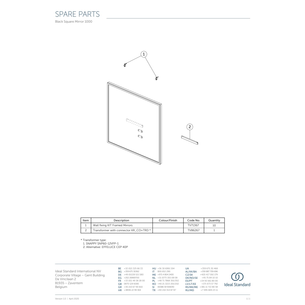 Ideal Standard Conca Spiegel vierkant LED 100 cm Zwart