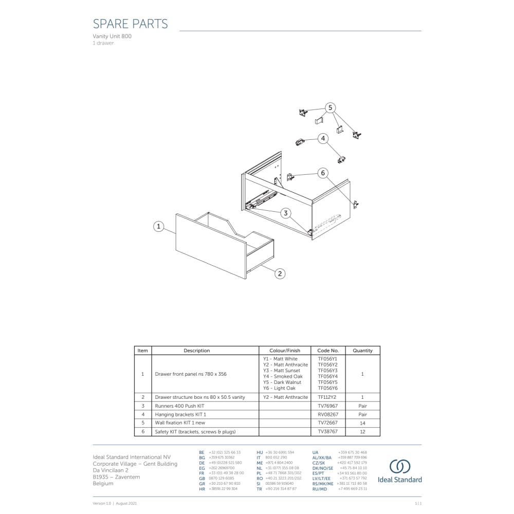 Ideal Standard Conca Wastafelonderkast 1 lade 80x50,5x37 cm Matt White