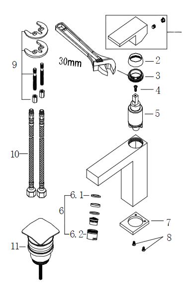 Saqu Cubo wastafelkraan incl. clickwaste chroom