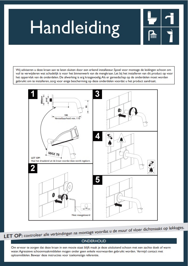 - Past boven elke wastafel door de muurbevestiging