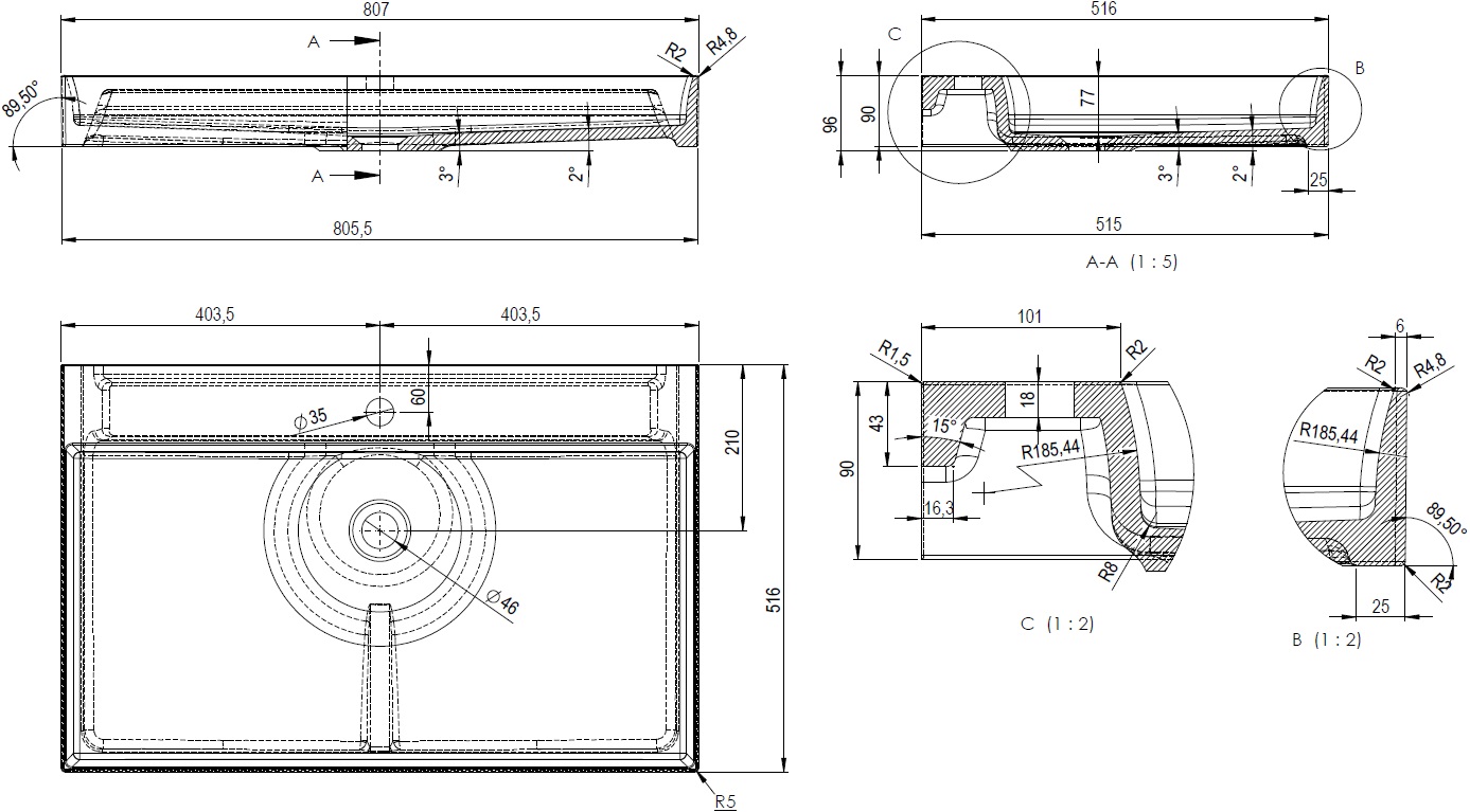 Vergeet niet een sifon, plug en kraan erbij te bestellen