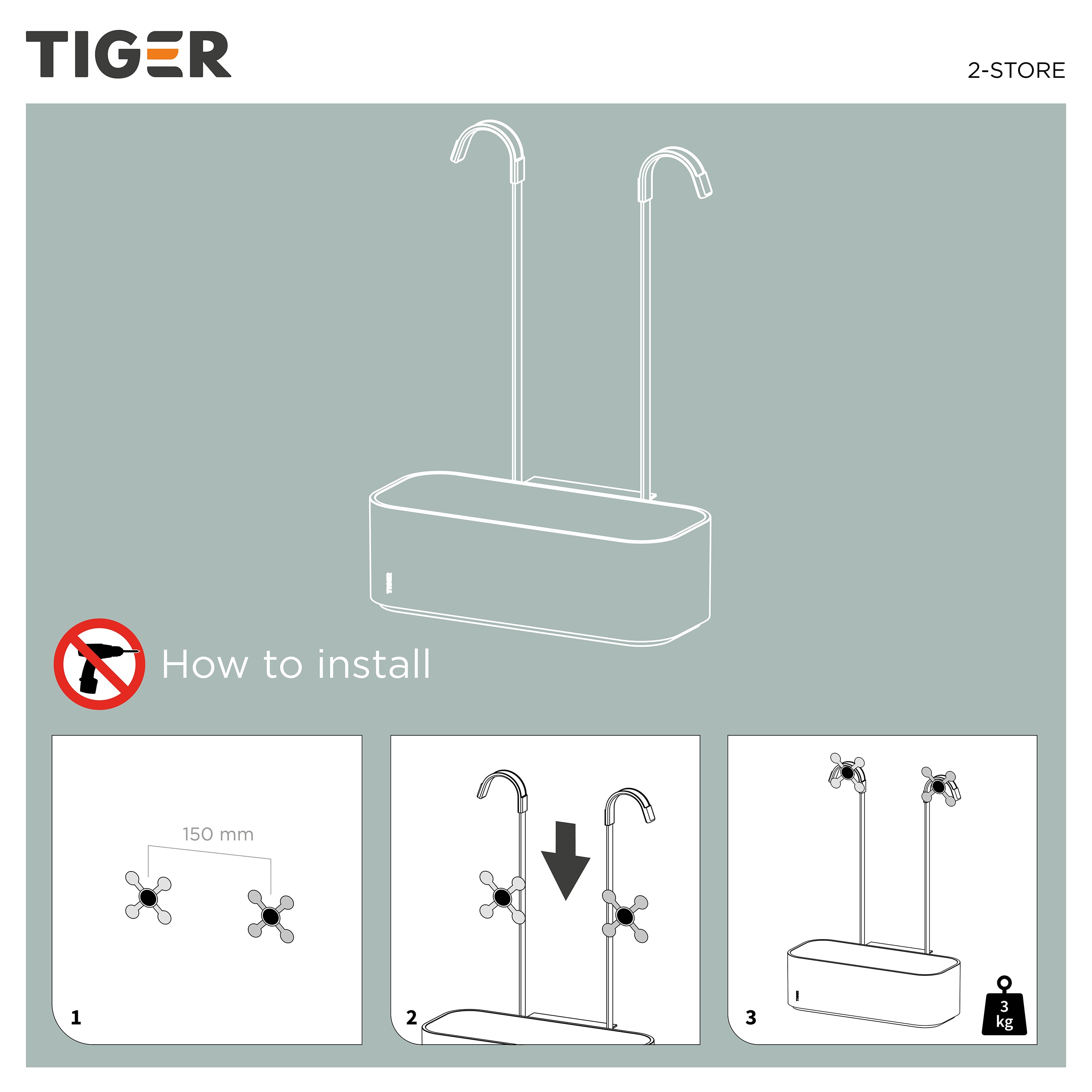 De 2-Store rekken van Tiger zijn naast heel handig, ook nog eens mooi. De douchemanden zijn aan de zijkanten dicht, voor een opgeruimd aanzicht. De bodem is volledig vlak zodat alles stevig staat, en heeft uiteraard een afwateringssleuf zodat er geen water in het mandje blijft staan. De extra stabilisatie aan de achterzijde zorgt dat het mandje recht hangt. Mag/wil je niet boren en is iets over je douchewand hangen geen optie? Geen probleem! Dit exemplaar is speciaal ontworpen om aan je douchekraan te hangen. Check vooraf wel even of je kraan een hartafstand van 15 cm heeft.