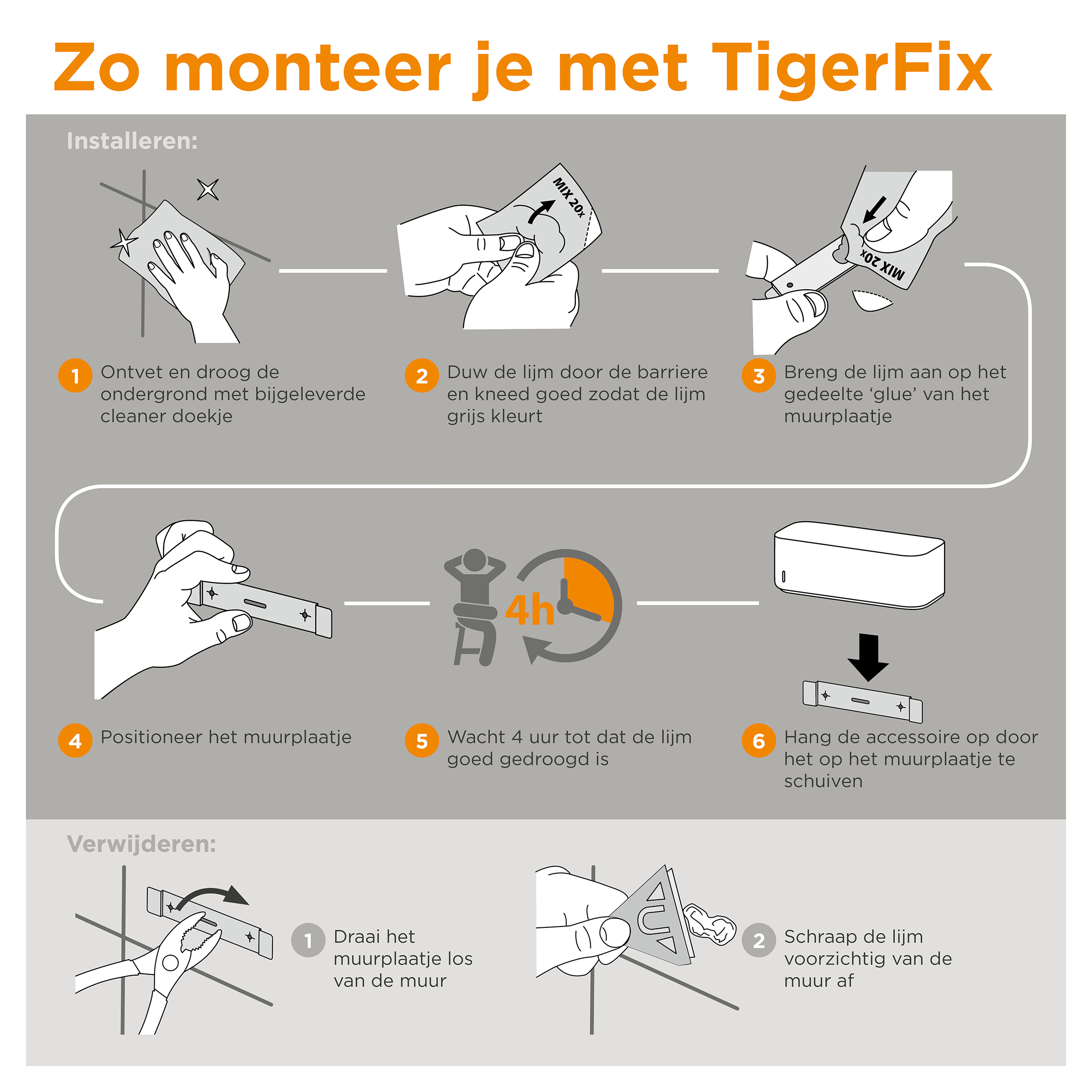 Liever niet boren? Dit artikel is ook te bevestigen met TigerFix montagelijm (niet inbegrepen)