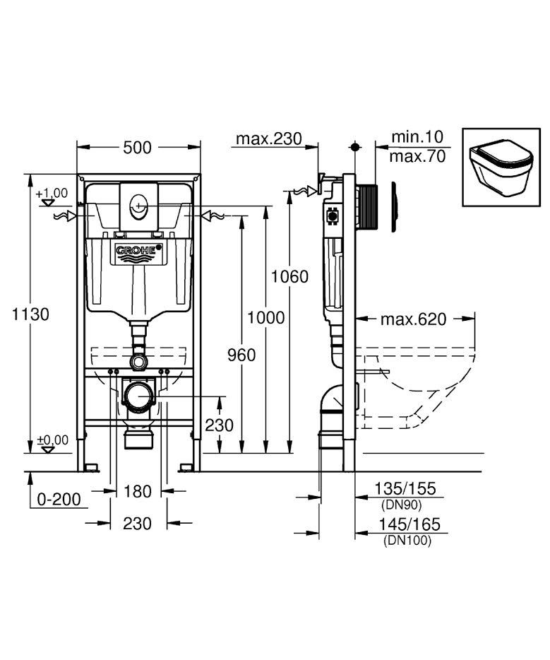 Villeroy & Boch O.Novo Direct Flush met Grohe Rapid SL en wit bedieningspaneel